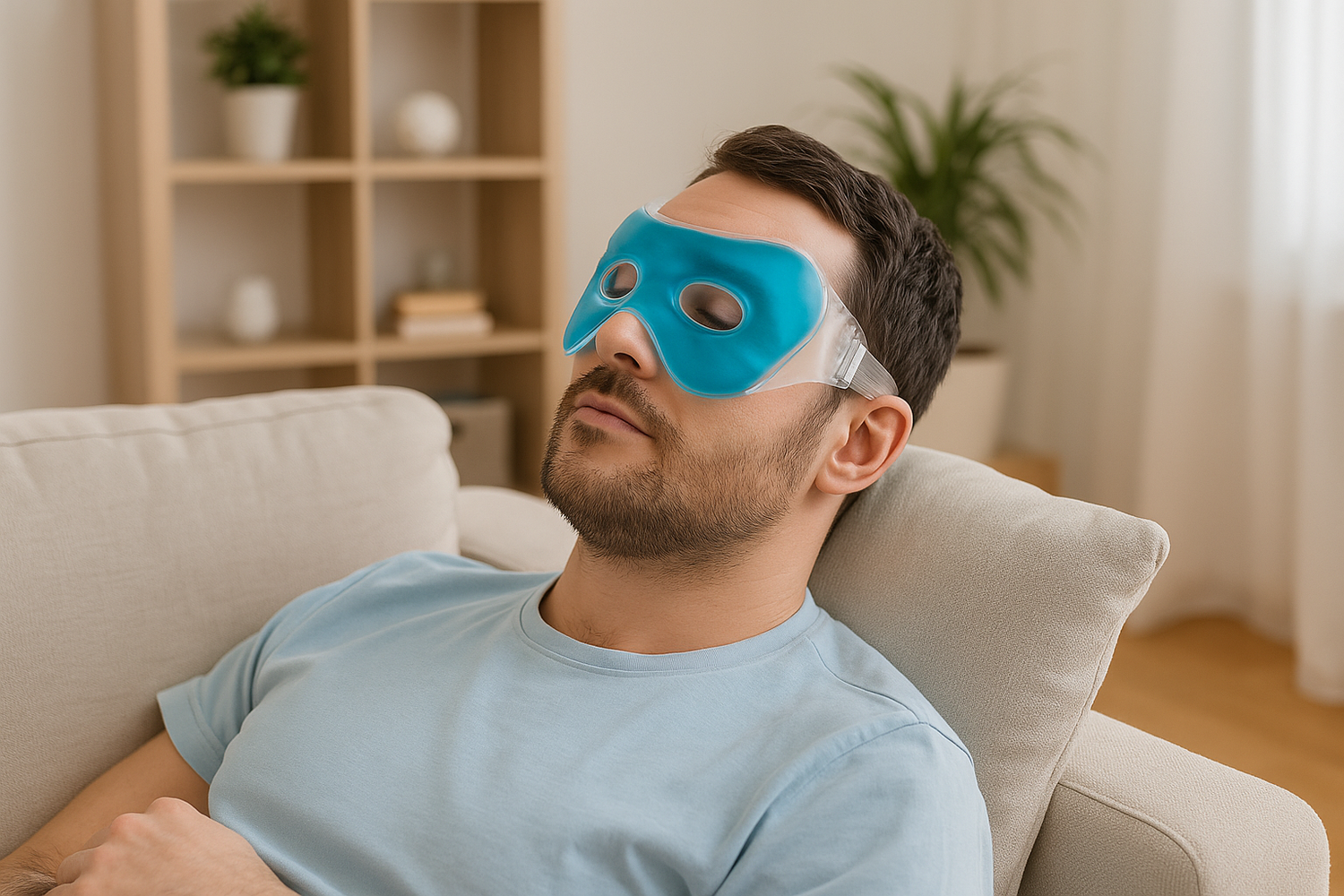 Legen Sie die Maske sanft auf Ihre Augen und lassen Sie das kühlende Gel Schwellungen, Spannungen und Müdigkeit reduzieren.